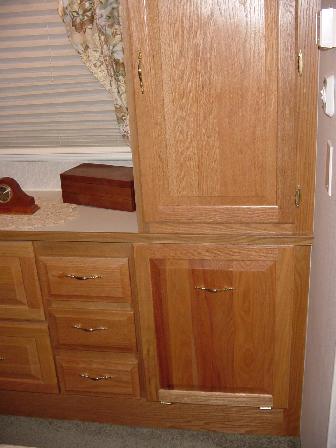 Cabinet rails & stiles = solid oak, not vinyl wrapped