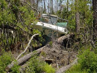 Here is a boat found several blocks north of the beach.