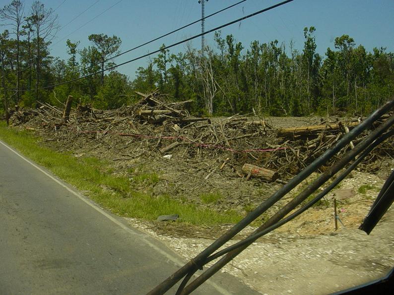 Debris cleaned up from the field on the right hand