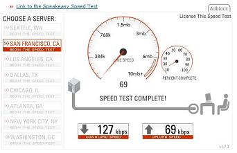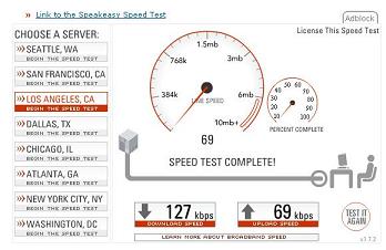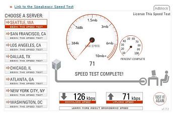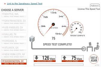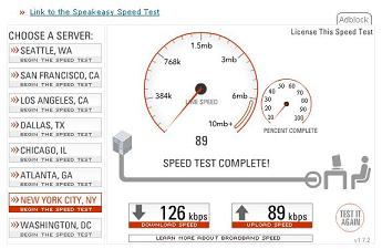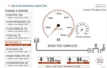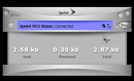broadband, or 1x Network. These tests were run with a Sierra 580 Air Card These tests were also run in April 2006. This is a series of tests conducted about an hour after the broadband test, which would make this around 3:00 in the afternoon. This was run from a slightly different location than Lancaster, Pa., where there was no broadband access, and we were using the 1x network. At the bottom of the page is the Sprint connection manager, so you can see what it looks like when not in a broadband area. Notice the single arrows pointing up and down. Actual download speeds will be about 8 - 10 % of what you see here, or downloading files at about 9 or 10 KiloBytes per second. What you see listed below is in kilobits per second. This connection is about double the speed of standard dial up access. A definate improvement, although a little expensive for the speed. However, the portability of it is great. |