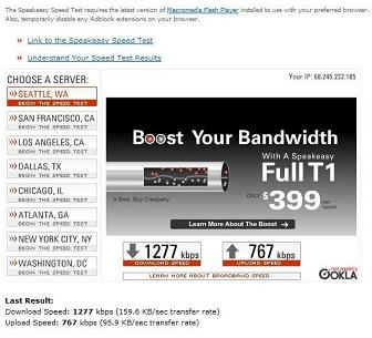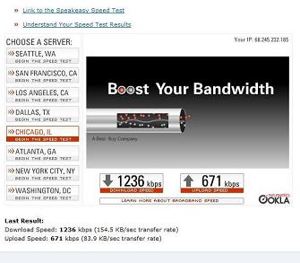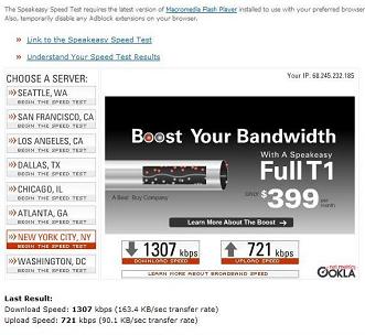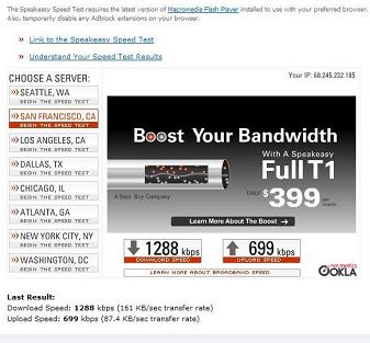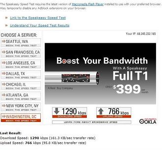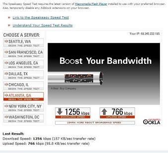 Rev A Results Run with a Sierra 595 Rev A Air Card These results were run from the exact same location in Lancaster, Pa. as the Rev 0 tests were a year ago, at about 5:00 in the afternoon in May 2007 on a Sunday. Notice the big difference from the Rev 0 card in this area, now that Rev A is turned on. Note that these results are in kilobits per second. Actual downloading of files will be about 8 - 10 % of this and will be in KiloBytes per second. |