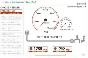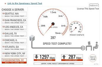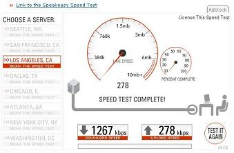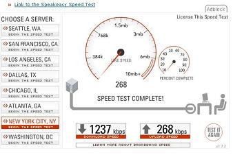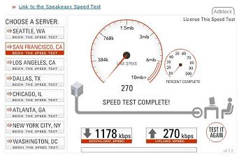 results. These tests were run in April, 2006 in Lancaster, Pa at about 2:30 in the afternoon. They were run while connected to a free wifi hotspot at Panera Bread. This was just to compare a more "real" broadband connection to what is being offered by Sprint. It is definately faster, cable broadband is way faster than even this wifi hotspot, but you are also tied to a single location, as opposed to the portability of using an air card from Sprint. |