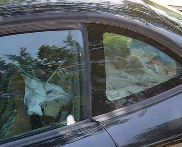 And the passangers side is filled with clothing. Just enough space for a driver. No stealth sleeping in this one. There's just no place to sleep, other than upright in the drivers seat. |