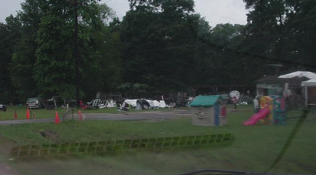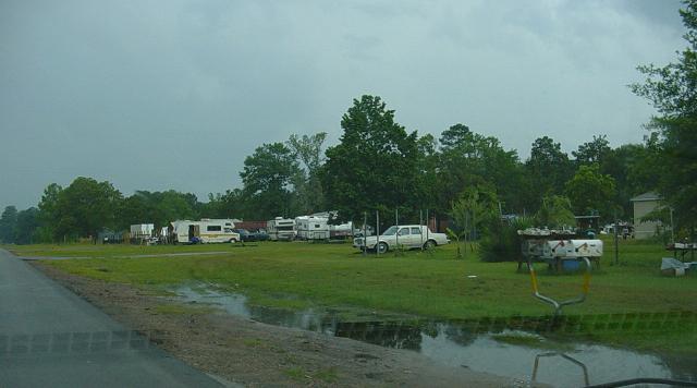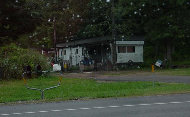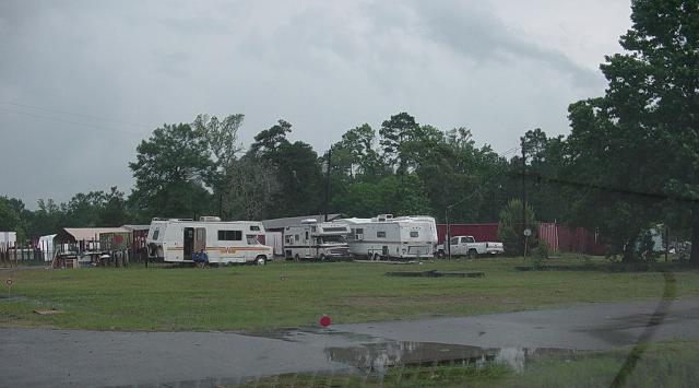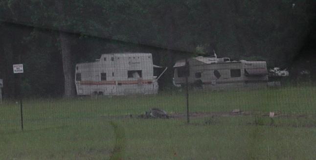 The trailer mentioned above. Note the tv dish on the pole in the center. Gotta have your priorities. |