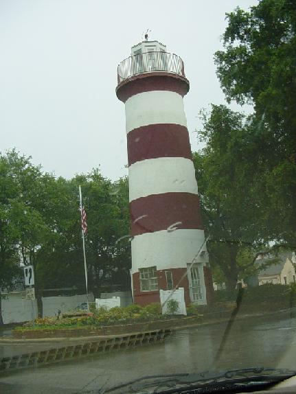 A Lighthouse at the entrance to a gated community next to Lake Conroe. |