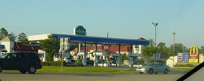 How about a McDonalds selling gas? This is along route 105 west of Conroe along the Lake. This is actually a McDonalds with a Chevron Gas station right in front of it. |