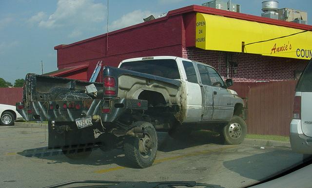 This thing was in kind of rough shape. It's supposed to be a dually, but the outer dual wheels in the rear are not there. |