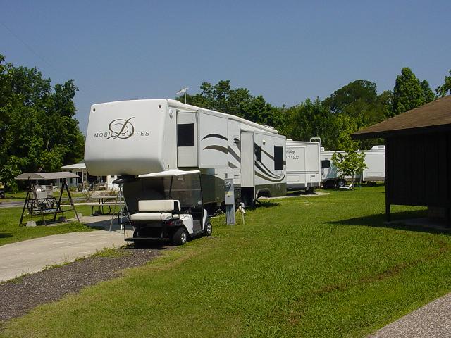 Many, but not all of these sites have golf carts that they use to get around the park. |