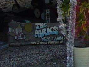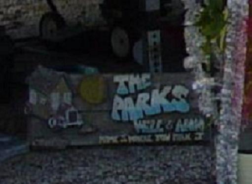 Here is a shot of that sign. Notice the house on wheels. |