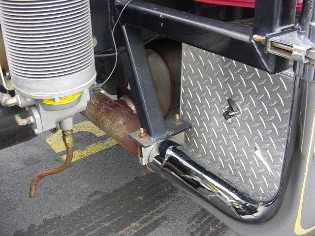Here's a closer picture of the exhaust. The muffler exits into a T pipe, which then goes up both sides, looking like it is a V-8 engine, but it actually is not. Just a 6 Cylinder with a split pipe. |