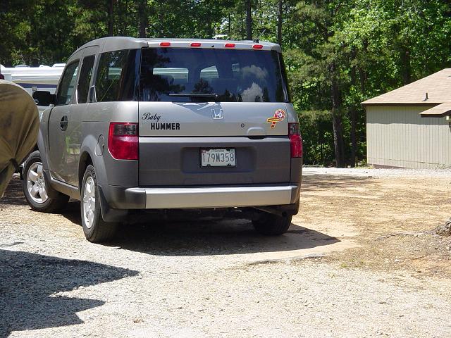 Here's a picture of a Honda Element that is parked in the same campground we are in. I thought the writing on the left was kind of unique - "Baby Hummer". |