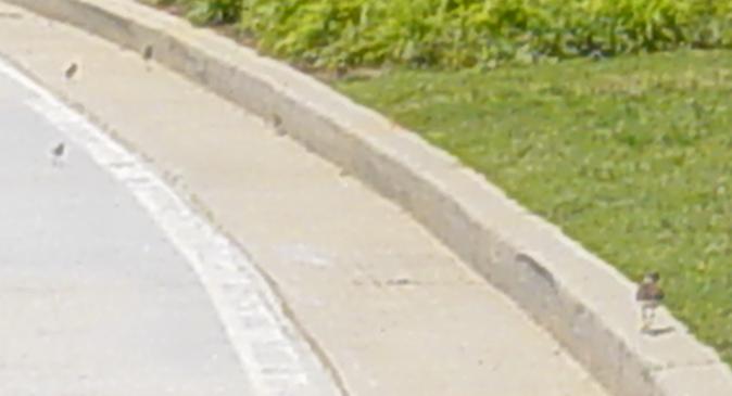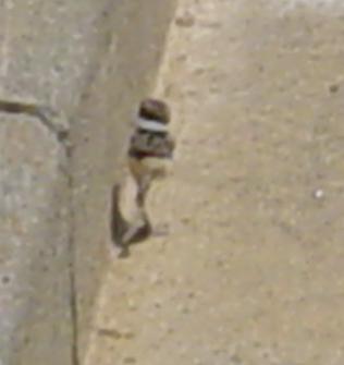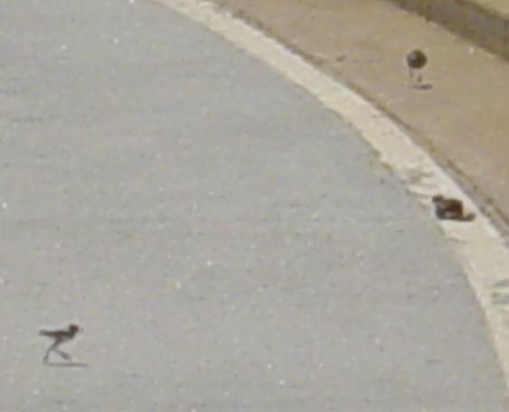 Here is a baby Killdeer that was running away from us as we were walking. The curb, to the left, was too high for it to jump up over, and it could not fly yet. All it could do was run. |