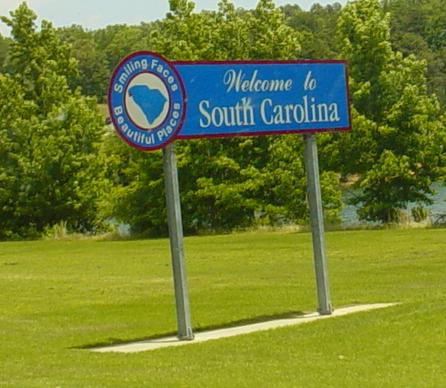 The South Carolina welcome sign coming back into the state, leaving Georgia. |