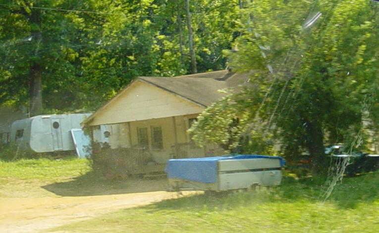 And another house and trailer within the city limits of Fair Play, SC. Ya just never know what you are gonna see around the next bend. If you look at the bottom of the picture, his garden is coming along just fine. |