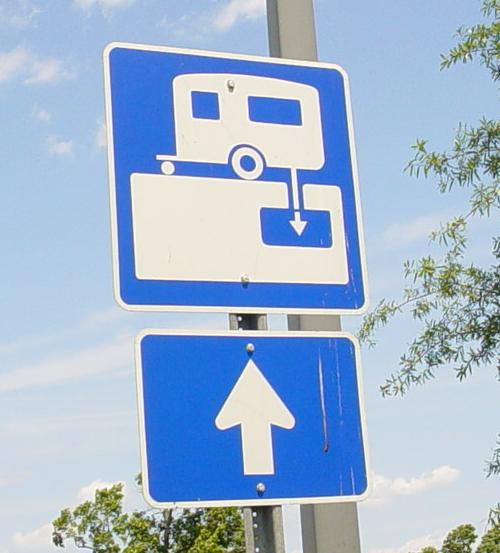 Stopping at the Welcoming Center - they have dump stations. This one was very clean. The dump station, not the sign. |