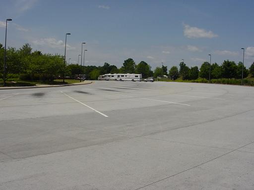 This is the other half of the parking lot from the other direction. Again our Motorhome is in the center. I counted about 60 large spaces for parking large rigs. Definately the largest Welcome Center we have seen so far on this trip. |