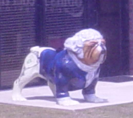 Another Bulldog, outside of one of the Apartment Buildings used by some students of the University. |