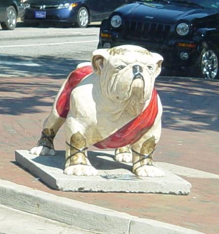 Bulldogs, all over town. I suppose you've heard of the Georgia Bulldogs. Well, Athens, Ga. is the home of the University of Georgia. The town has these things on a lot of different street corners, just like Harrisburg, Pa. did the cows a while back. |