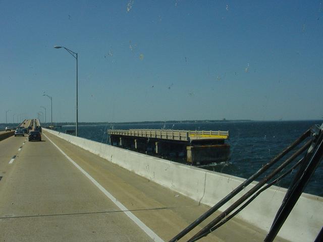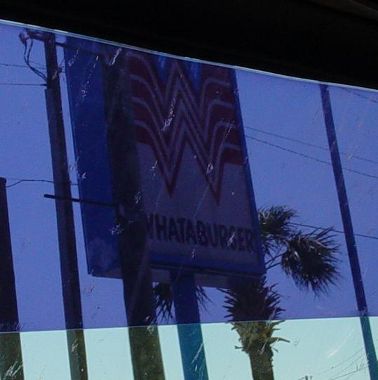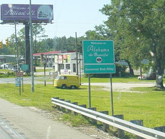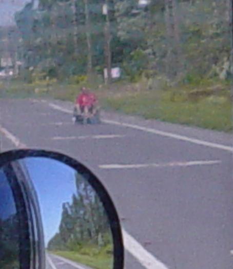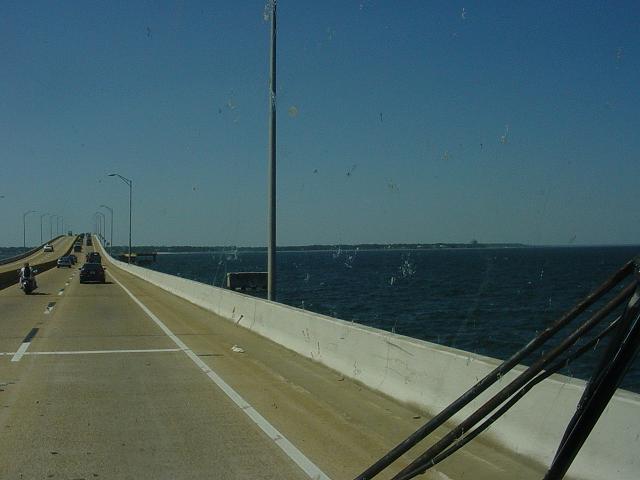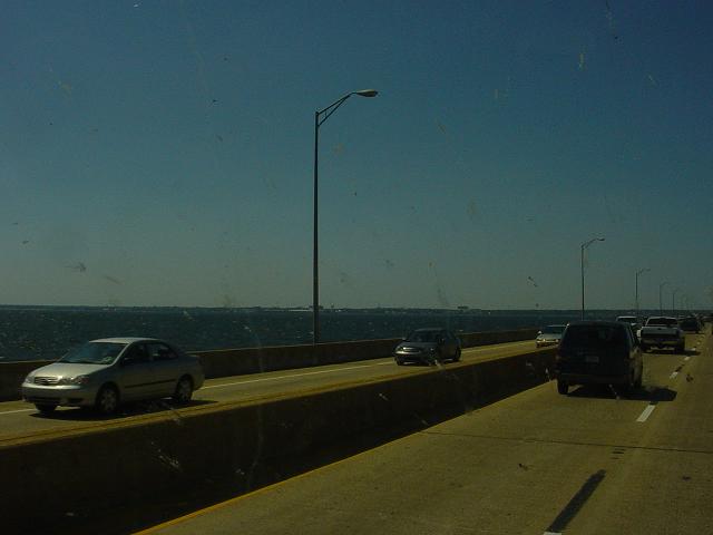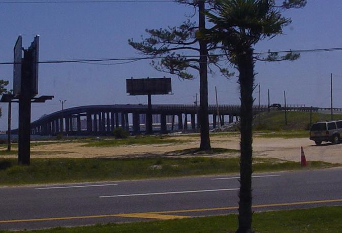 This was taken in the rear view mirror. I'm not sure how well it shows up, but some knucklehead was in a wheelchair, wheeling donw the turning lane along roue 98 just west of Ft. Walton Beach. I told Sherry, "that's a good way to get killed". He didn't seem to be excited about all the traffic wizzing by him, either. He's either got more guts than I have, or he is just plain nuts. |