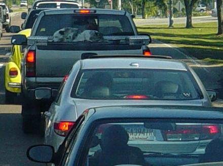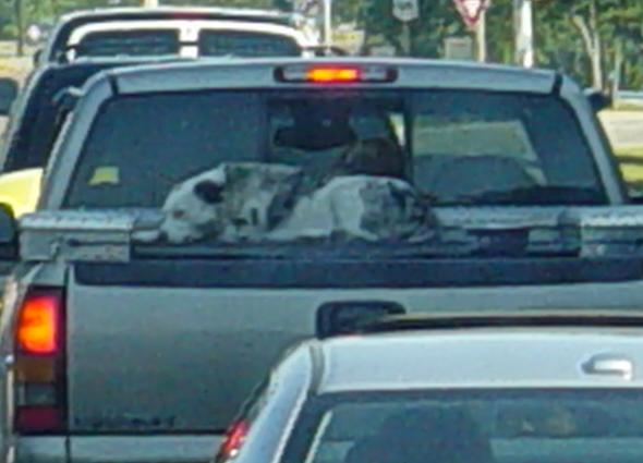 Started off the morning seeing a dog on the back of a pickup truck. He was standing and just decided to lay down, and take a nap. |