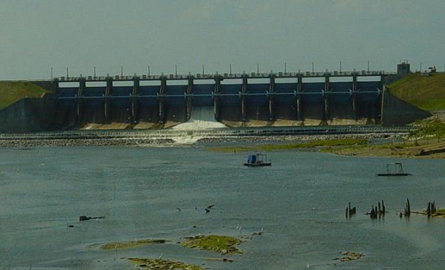Here is a picture of the Livingston, Tx dam. There is a huge lake on the back side of this dam. |