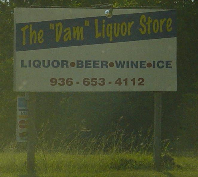 The story behind this sign is, the Liquor Store is about 1/4 mile away from the "Dam", so I guess they figured the appropriate name for it is "The "Dam" Liquor Store". Seems about right, don't ya think? |