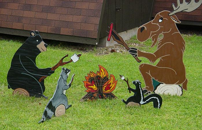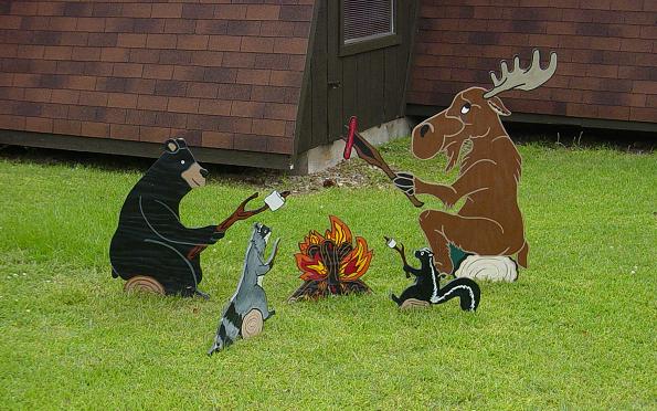 Couple of animated cutouts in front of the office at Thousand Trails. |