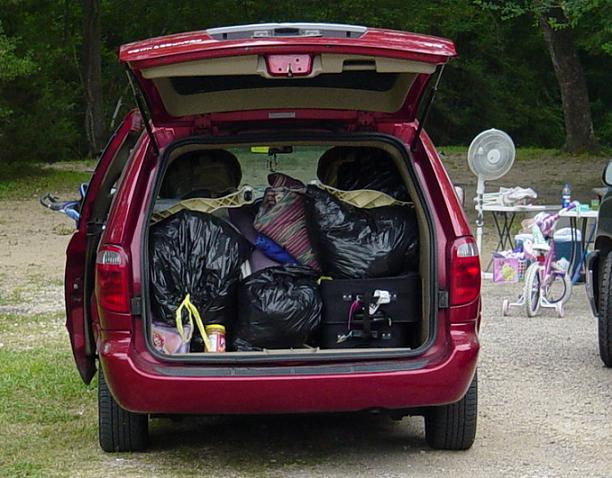 Remember the guy that came in last week with a popup being pulled by a black pickup truck? The pickup was loaded to the gills, in the rear. This van also showed up at the same site, and just look - they have the van jammed full as well. They brought more stuff along for a weekend, than we have for a 2 month trip. Go figure. |