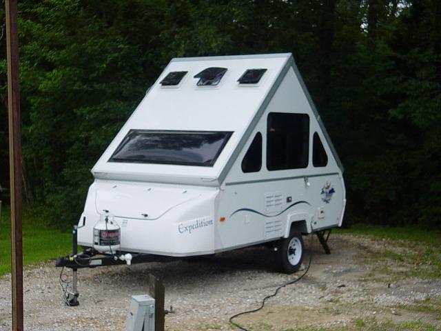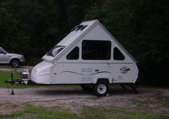 Then of course there is the A-Frame. This is a little hard sided pop up. The A portion of it folds up or down in about 30 seconds. |